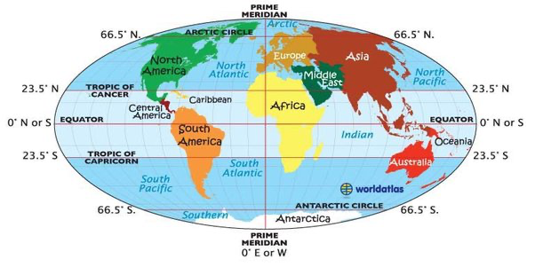 Continent map with latitude and longitude From KATRINA AXFORD
